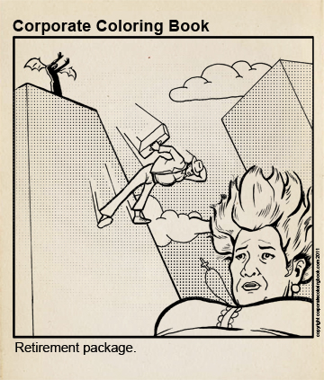 Retirement Package – Color Your Own! Posted on March 31, 2011 Even destitute ex-professionals have crayons. Download printable version now. Share this: Click to email a link to a friend (Opens in new window) Email Click to share on Facebook (Opens in new window) Facebook Click to share on X (Opens in new window) X Click to print (Opens in new window) Print More Click to share on Reddit (Opens in new window) Reddit Like Loading... Related