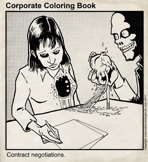 Contract negotiations – Color your own! Posted on May 12, 2011 You should be thankful to have a job. Download & Color your own! Share this: Email a link to a friend (Opens in new window) Email Share on Facebook (Opens in new window) Facebook Share on X (Opens in new window) X Print (Opens in new window) Print More Share on Reddit (Opens in new window) Reddit Like Loading... Related