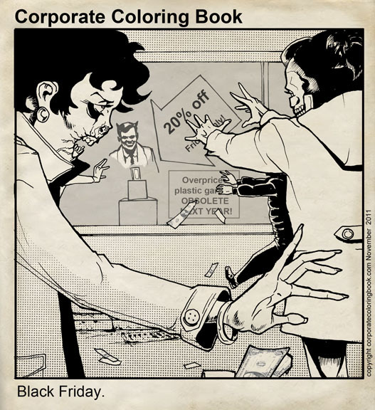 Black Friday. Color your Own! Posted on November 24, 2011 Must. Buy. Shit. On Sale. Print a copy to color while you wait in line at 3am. Share this: Click to email a link to a friend (Opens in new window) Email Click to share on Facebook (Opens in new window) Facebook Click to share on X (Opens in new window) X Click to print (Opens in new window) Print More Click to share on Reddit (Opens in new window) Reddit Like Loading... Related